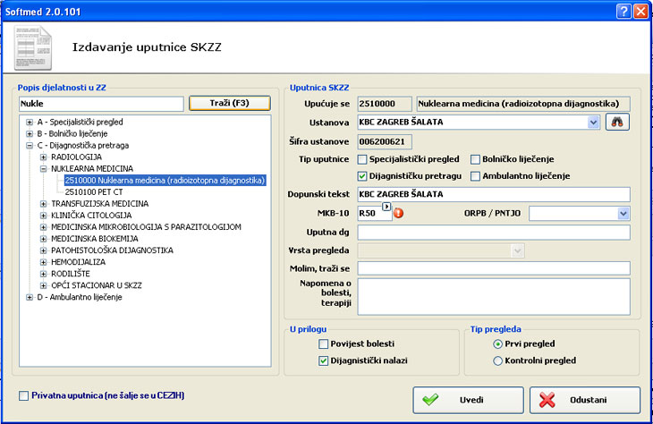 - predefinirani razlozi dolaska u pregledu (za lakše nalaženje starih pregleda kad ih ima puno)