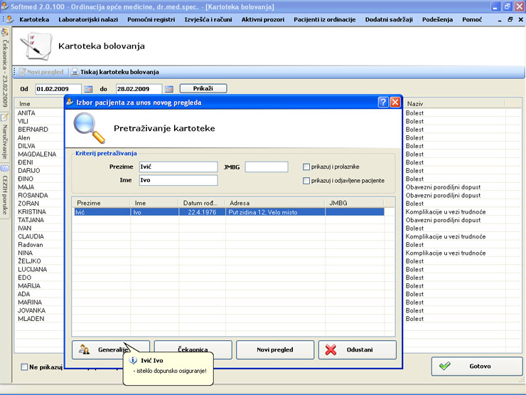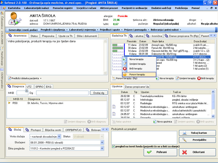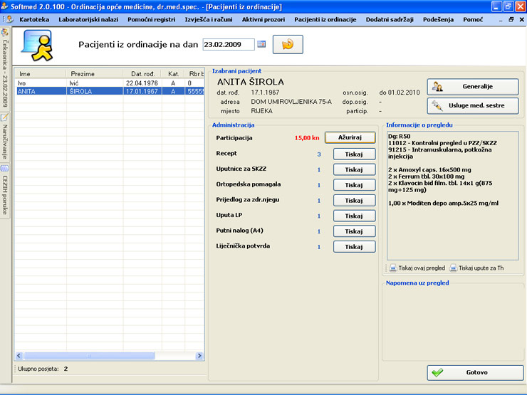 - mogućnost da više liječnika koristi program na istom računalu (u smjenama i sl.)