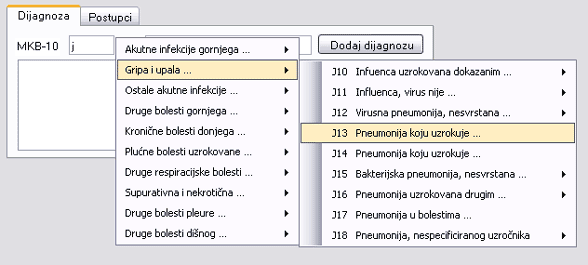 - napredni MKB-10 izbornik (u poljima gdje se upisuju šifrirane dijagnoze)