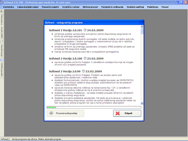 - automatska nadogradnja putem Interneta (liste lijekova, šifrarnici, postupci, nove verzije programa)